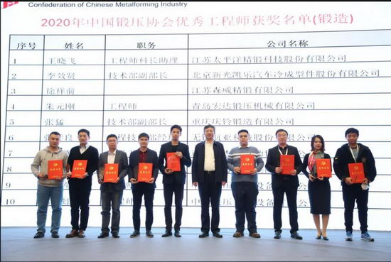 中國鍛壓協(xié)會理事長夏漢關(guān)先生為優(yōu)秀工程師頒獎并合影
