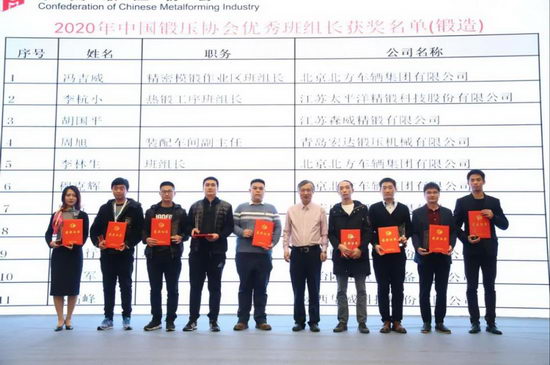 中國鍛壓協(xié)會秘書長張金先生為優(yōu)秀班組長頒獎并合影