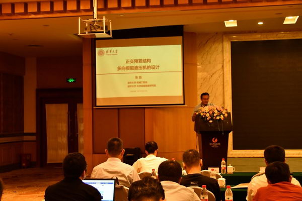 清華大學(xué)張磊副教授向大家介紹《正交預(yù)緊結(jié)構(gòu)多向模鍛液壓機(jī)的設(shè)計》