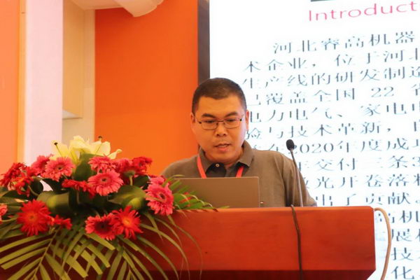 河北睿高機(jī)器人科技有限公司總經(jīng)理張鵬做《激光開(kāi)卷落料線的先進(jìn)技術(shù)》的分享。
