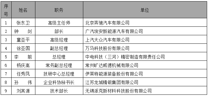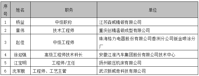 表3 鍛壓行業(yè)杰出青年名單