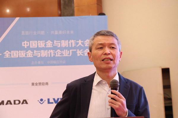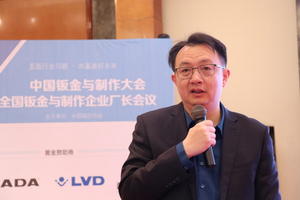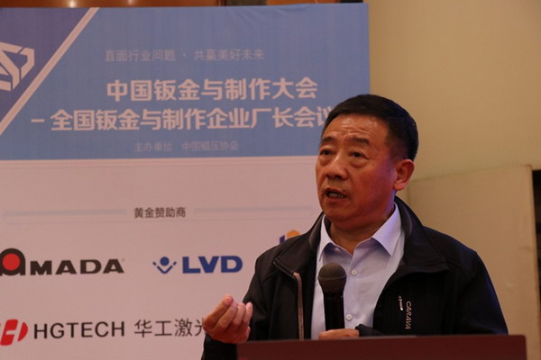 中國鍛壓協(xié)會輪值理事長、常州市鈑金行業(yè)協(xié)會會長、常州偉泰科技股份有限公司董事長酈東兵作了題為《關于鈑金制作企業(yè)未來發(fā)展的思考》的報告。