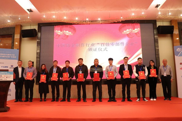 中國鍛壓協(xié)會為“優(yōu)秀班組長”頒獎,為“《鈑金與制作》雜志合作伙伴”授牌,為中國鈑金制作行業(yè)“百佳零部件企業(yè)”頒證。