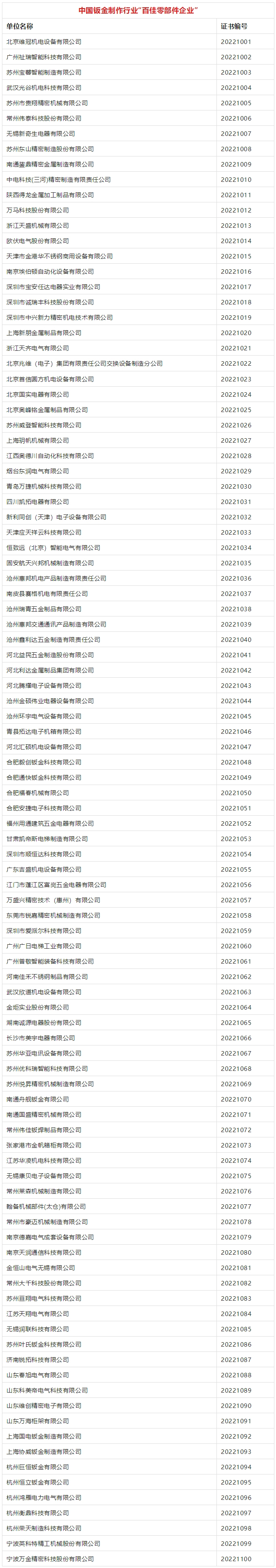 中國鍛壓協(xié)會為中國鈑金制作行業(yè)“百佳零部件企業(yè)”代表頒發(fā)證書。