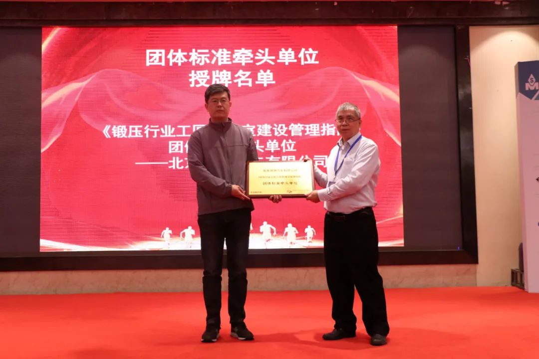 圖為《鍛壓行業(yè)工匠工作室建設管理指南》團體標準牽頭單位——北京奔馳汽車有限公司授牌現(xiàn)場