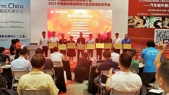 隨后,大會主辦方在現(xiàn)場舉辦了鍛壓行業(yè)品牌企業(yè)頒獎儀式,由中國鍛壓協(xié)會副秘書長白玉冰先生為獲獎企業(yè)頒獎。