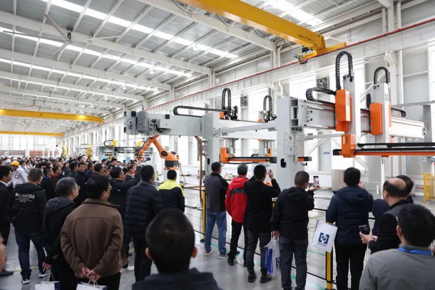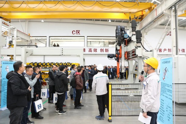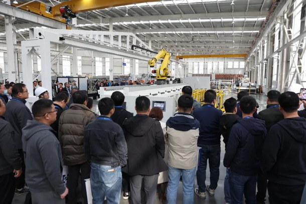 10日上午,參加本次論壇的代表在濟南昊中自動化有限公司 總經理 何剛先生 的帶領下,現場參觀了昊中最新研發(fā)18SPM單臂沖壓線自動化系統(tǒng)、自動上料系統(tǒng)、自動裝箱系統(tǒng)、大間距單臂、多工位、熱成型機械手、熱成型自動裝箱、干式清洗機、在線質檢系統(tǒng)等裝備。