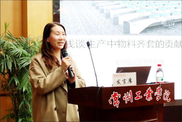 中電科技三河精密制造有限責(zé)任公司計(jì)劃經(jīng)理王衛(wèi)娟做了題為《淺談生產(chǎn)中物料齊套的貢獻(xiàn)和方法》的報(bào)告。
