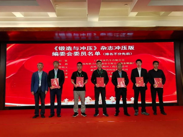 會上,還公布了《鍛造與沖壓》雜志沖壓版新增編委會委員名單,并向新增編委頒發(fā)聘書。接著,舉行了崔巖模具工匠工作室授牌儀式和第二屆沖壓行業(yè)論文榮譽證書授予儀式,部分獲獎?wù)撐淖髡叱鱿瘯h并上臺領(lǐng)取榮譽證書。
