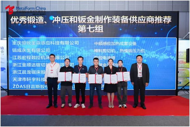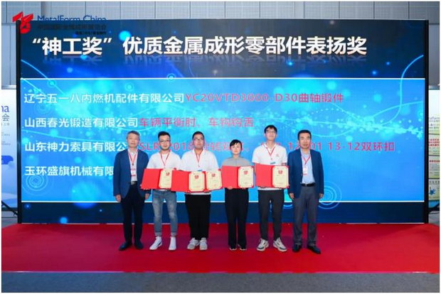 中國鍛壓協(xié)會副理事長韓木林、齊俊河為獲獎單位頒獎