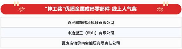 中國鈑金制作行業(yè)“百佳零部件企業(yè)”推薦獎等頒獎盛典!