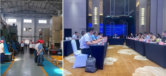 12日上午,參會領(lǐng)導(dǎo)及專家前往萬向錢潮股份公司參觀了下料、熱鍛和冷鍛等多條生產(chǎn)線。
