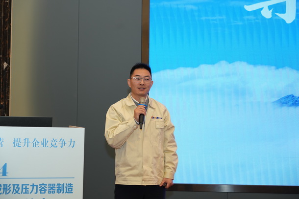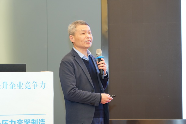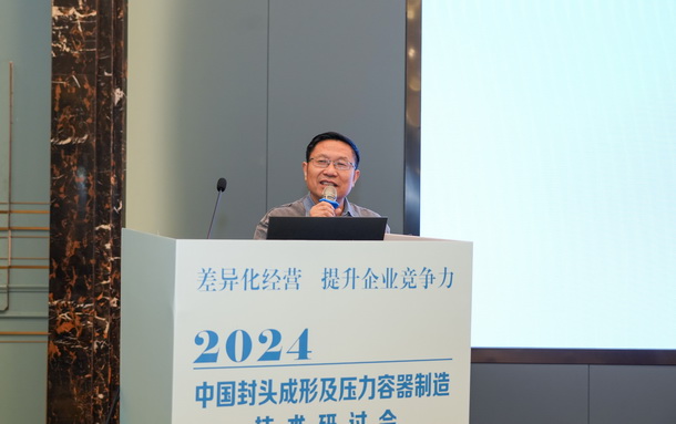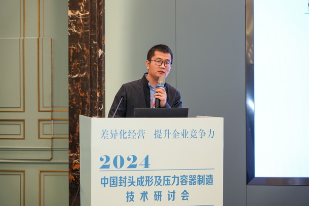 合肥通用機械研究院有限公司特材公司總工張義軍做《封頭制造業(yè)發(fā)展及標準應(yīng)用》的報告。