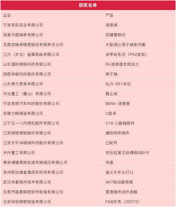 其中“神工獎(jiǎng)”是由中國鍛壓協(xié)會自2002年起組織的一項(xiàng)重要的行業(yè)工作,今年走到十九個(gè)年頭,至今已有五百多家企業(yè)近千件零部件參評,評選工作有效地促進(jìn)了參評零部件企業(yè)的技術(shù)改進(jìn)與提升,并成為企業(yè)和采購商談判時(shí)的加分項(xiàng)。