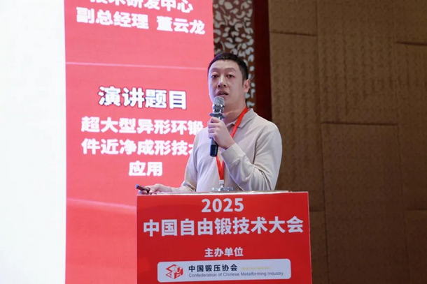 伊萊特能源裝備股份有限公司 技術(shù)研發(fā)中心副總經(jīng)理 董云龍作《超大型異形環(huán)鍛件近凈成形技術(shù)應(yīng)用》報告