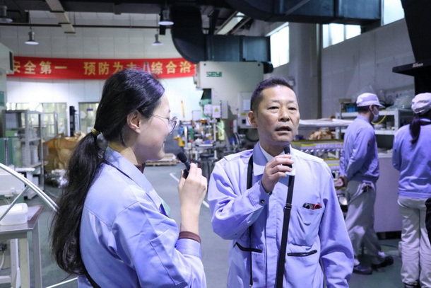 明思作機(jī)電(無(wú)錫)有限公司藤森康史總經(jīng)理(右)介紹公司情況