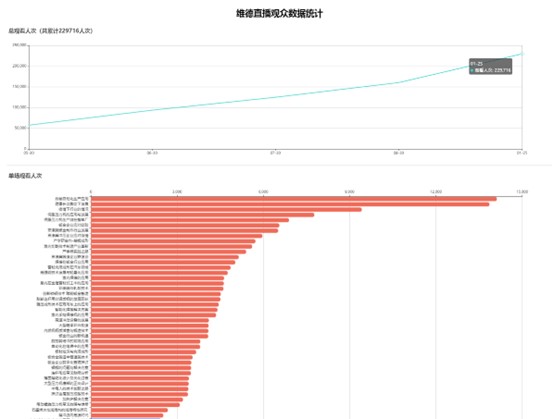 維德直播與4月25日正式開播。截至9月15日共開播49場,收聽收看人次達229716人。具體直播內(nèi)容及收看人次統(tǒng)計如下: