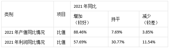 表2.1 沖壓裝備企業(yè)2021年產(chǎn)值和利潤同比匯總表